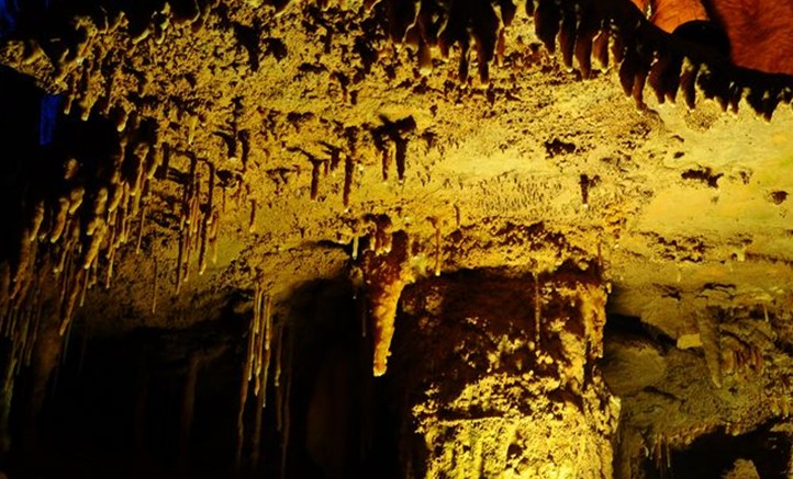在洞內(nèi)地下河游船上你可置身于一寬度不足10M,但高達(dá)50M以上的峽谷中,而在最高處的洞頂,卻是石鐘乳垂吊如林,更若厚厚的云層蓋頂,蔚為壯觀??芍^船在水中行,人在畫(huà)中游。