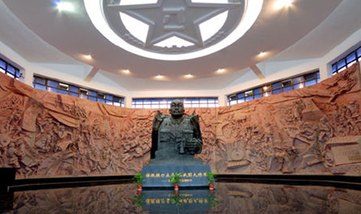 紀念館采用中國傳統(tǒng)式庭院布局,富有濃厚地方色彩的馬頭墻門廊、青灰瓦屋頂以及灰白墻鑲著的仿宋窗欞,既有古老的楚湘神韻,又有較強的時代感。序廳為一個寬敞的八邊形,正墻由三組暗紅色高浮雕組成,分別表現(xiàn)血戰(zhàn)羅霄、百團大戰(zhàn)、抗美援朝主題。正中是一座半身圓雕,塑造了解放戰(zhàn)爭時期的彭德懷。版權所有山東聊城聊之旅國際旅行社有限公司,轉(zhuǎn)載必究!兩側是兩組壁畫,主題為“致力于軍隊革命化、現(xiàn)代化、正規(guī)化建設”、“與人民群眾心連心”。整個序廳以極富感染力的藝術作品,高度濃縮了彭德懷史詩般的英雄業(yè)績和偉大的人格魅力。