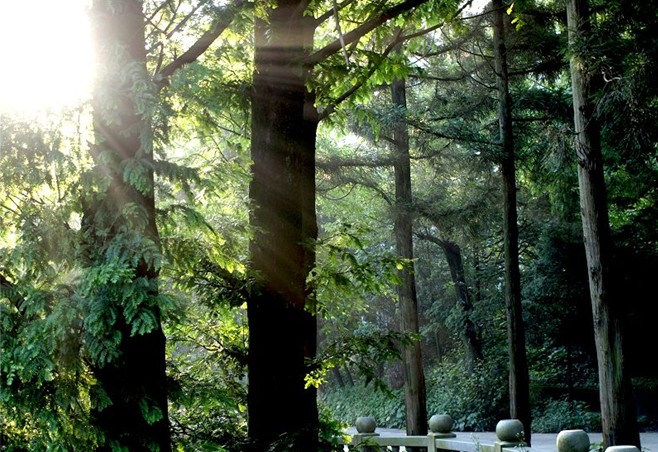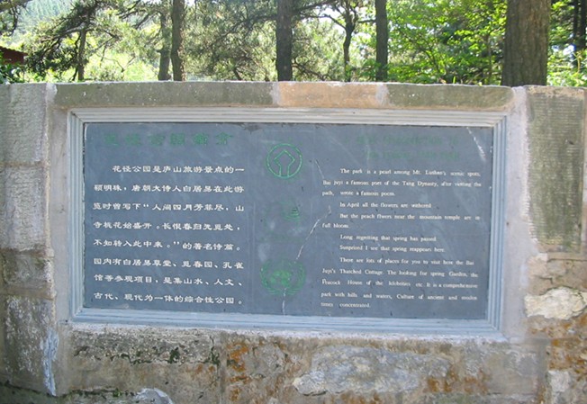 花徑公園位于牯嶺街西南2公里處的如琴湖畔。有公路抵達,沿大林路步行,順路可見冰川遺跡——冰桌巨石,又叫飛來石?;◤较鄠魇翘拼娙税拙右自佋姟洞罅炙绿一ā返牡胤?。白居易被貶任江洲(九江)司馬時,于公元816年登廬山游覽。時值暮春,山下桃花已落而此處卻桃花盛開,白居易有感吟詩一首:“人間四月芳菲盡,山寺桃花始盛開。長恨春歸無覓處?!?/p>