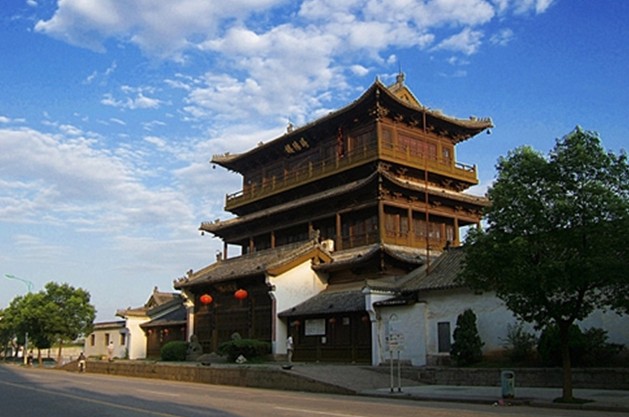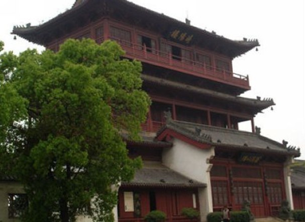 主體結(jié)構(gòu)建于1374年(明洪武七年), 是一座由宋元向明清過(guò)渡的代表建筑,系我國(guó)現(xiàn)存明代樓閣中最大的一座。樓內(nèi)匾、聯(lián)、題、刻琳瑯滿目,塊塊題詠刻石精工鑲嵌,尤以清康熙御筆‘神光鐘瑛’碑,乾隆詩(shī)刻,清狀元傅以漸、鄧鐘岳手跡,郭沫若、豐子愷匾額、楹聯(lián)至為珍貴。