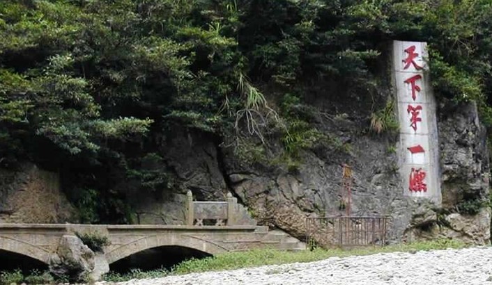位于猛洞河南岸石壁上。洞門兩丈見方,五顏六色的鐘乳吊掛于門洞上。沿前有一巨大橫石,猶如出洞的烏龜。洞的上方,有一根長約10米的乳石,長滿青苔蕨草,青蔥蒼翠,乳石下端一線細流,形成珠磯一串。左邊石壁上,刻有“天下不二門”五個大字,剛勁瀟灑。八音洞內(nèi)有三個圓形廳堂,能容納數(shù)百人。在第三個洞廳的檐上,吊著一個飾子大乳石,形若南瓜,分為數(shù)瓣,敲之,在不同部位,能發(fā)出“1、2、3、4、5、6、7、i”八個音階,若是音樂師,能敲出悅耳的樂曲。