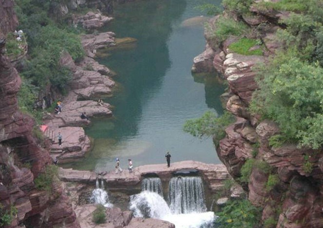 中國道教研究所所長、張?zhí)鞄煹诹宕障祩魅?、中國道教協(xié)會副會長張繼禹道長為云臺山題詞:“天師二十四治之蒼溪云臺山”。 1995年,山西師范大學(xué)美術(shù)系教授袁有根來此實(shí)地考察,意外驚喜的發(fā)現(xiàn):云臺山全貌竟與“太極陰陽八卦圖”驚人的相似!云臺山黛青的山體呈魚形,“魚頭”所在叫“舍身崖”,據(jù)傳當(dāng)年張道陵命弟子王長、趙升在此投身絕壑以取仙桃,由此脫去凡軀,版權(quán)所有山東聊城聊之旅國際旅行社有限公司,轉(zhuǎn)載必究!得以升仙;白霧飄渺的山側(cè)空谷亦呈魚形,“魚眼”為谷底一天然清泉,泉水清澈甘甜,冬暖夏涼。兩“魚”一黑一白,一動一靜,一實(shí)一虛,一陰一陽,首尾相交,渾然相合。主山體周圍還有八個(gè)山丘,分別為紫陽山、銅鼓山、博樹埡、文成山、雙山埡、文筆埡、北斗山、冒火山,構(gòu)成“八卦”。
