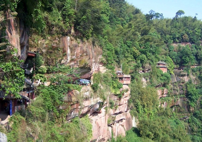 過忘憂谷,在幽篁間有幾十里游覽小徑,被稱為“翡翠長廊”。在這條長廊中漫步,清新的空氣中飽含竹葉的清香,如置身世外。由“翡翠長廊”前行,前面就是著名景點(diǎn)仙寓洞。仙寓洞位于兩縣交界的擦耳巖上,為蜀南佛山勝地,以奇險(xiǎn)幽靜著稱,傳為營造竹林的瑤箐仙姑居所。入夜,可欣賞到彈琴蛙聲,此起彼伏,聲如古琴,余韻悠長,舉世罕聞。這一帶山勢回環(huán),丹崖如削。去仙寓洞要從構(gòu)筑在懸崖邊的小徑上行百余米,甚為驚險(xiǎn)。洞長約200米,進(jìn)深10米,高約15米。洞內(nèi)原為古道觀,有大佛殿、玉皇殿、觀音殿、靈官殿等?,F(xiàn)道觀已不存,但仍有石刻佛像和道教神像四十多尊。這里是觀賞竹海的好地方,站在洞口眺望,只見萬竹掀濤,竹海的奇特風(fēng)光盡在眼底。