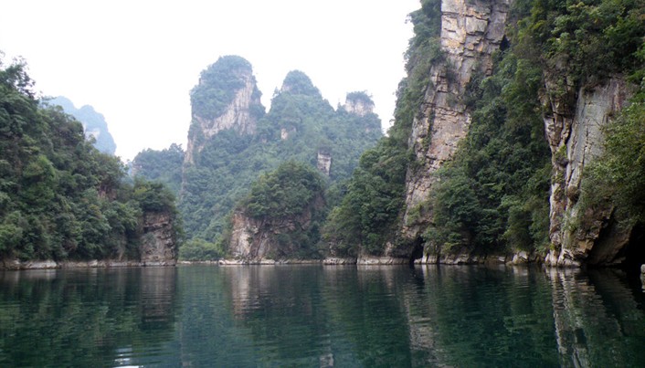 寶峰湖水深72米,長(zhǎng)2.5米公里,以其秀麗的湖光水色與幽野的洞天情趣成為武陵源水景風(fēng)光的代表之作,電視劇《西游記》中花果山水簾洞外景就拍攝于“奇峰飛瀑”。
