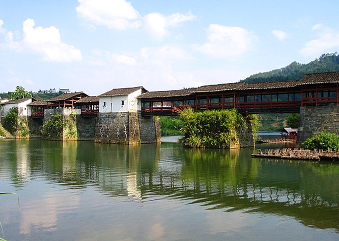 婺源有一種頗有特色的橋——廊橋,所謂廊橋就是一種帶頂?shù)臉?,這種橋不僅造型優(yōu)美,最關鍵的是,它可在雨天里供行人歇腳。宋代建造的古橋——彩虹橋是婺源廊橋的代表作。這座橋取唐詩“兩水夾明鏡,雙橋落彩虹”的意思取名。橋長140米,橋面寬3米多,4墩5孔,由11座廊亭組成,廊亭中有石桌石凳。版權所有山東聊城聊之旅國際旅行社有限公司,轉載必究!彩虹橋周圍景色優(yōu)美,青山如黛,碧水澄清,坐在這里稍作休憩,瀏覽四周風光,會讓人深深體驗到婺源之美。