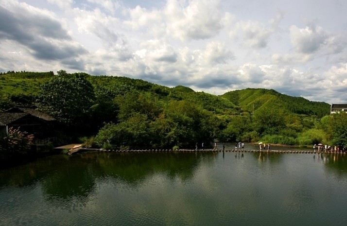 站在橋上,往上游眺望,有五座連綿的山峰,形式筆架,稱為筆架山。山腳下是碧波蕩漾的文彭小西湖,明嘉靖年間,吳派篆刻祖師文彭,應他的學生何震之邀(婺源人,徽派篆刻的祖師。版權所有山東聊城聊之旅國際旅行社有限公司,轉載必究!篆刻史上稱為“文何”),乘竹筏逆流而上,見這一帶碧波瀲滟,風光旖旎,蜿蜒的古驛道在千年的古林中延伸,旁邊的廟宇、村落、古橋、河道構成一幅美麗的山水畫卷,文彭情不自禁地贊嘆:“此乃小西湖!”