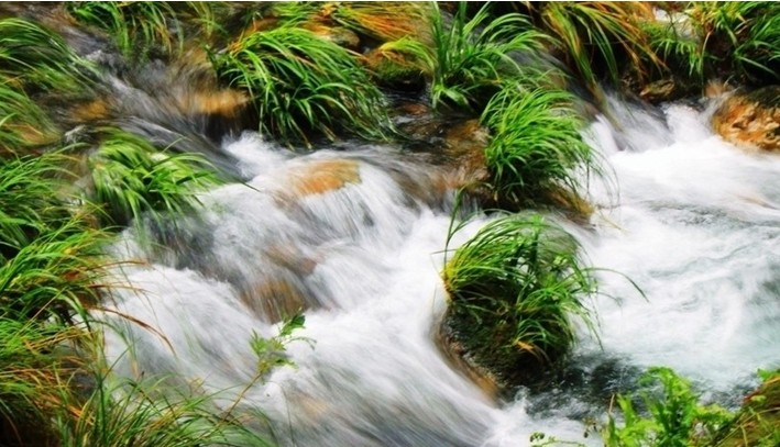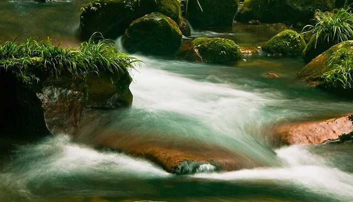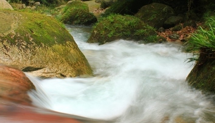 9、紫草潭:位于金鞭溪中游。原名紙草潭,因清代山民造土紙在此漂流而名。潭寬4米,長 15 米,深2米。上連一石潭。潭底皆紫紅色巖石,潭上端溪流湍急,跌宕有聲,水花如滾珠瀉玉。潭內(nèi)水面平靜,清澈見底,魚蝦悠游其中。 游魚細(xì)石,直視無礙,夾岸林林蒼翠,石峰屏列。潭邊巨石橫臥,光潔如玉。