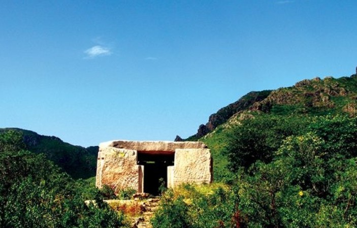 遼太祖陵位于赤峰市巴林左旗哈達(dá)英格蘇木石房子村大布拉格山谷中,這里相傳為契丹始祖發(fā)祥之地,遼太祖耶律阿保機(jī)駕崩后葬于此。位于巴林左旗石房子村西北。為守護(hù)和祭祀遼太祖陵墓的奉陵邑,陵在城西北約2公里的山谷中。城垣分為內(nèi)外兩城,東南向,外城周圍約2公里,殘墻高約6米,4個(gè)門址尚存,東門和北門還可見到甕城痕跡。內(nèi)城只筑有南墻,高略同于外城墻,墻上正中開設(shè)大門,門內(nèi)有幾處高大的享殿、祭殿基址。西北隅現(xiàn)存有石房子一座,花崗巖大石板構(gòu)筑,高3.5米,寬6.7米,進(jìn)深4.8米,全屋只用7塊大石板,這種結(jié)構(gòu)的石室,為中國(guó)古代建筑物中所少見,也是遼代建造石室中僅存的一座。內(nèi)城南門外有直通至外城南門的大街,寬約40余米。兩旁有官廨、膳房、作坊及兵卒住所等建筑遺址。南城門外的大道兩側(cè)及其西面,有兩組小型建筑群的基址,用石塊壘砌房基,布局大致整齊,為守陵戶居住區(qū),面積大于城址。為全國(guó)重點(diǎn)文物保護(hù)單位。