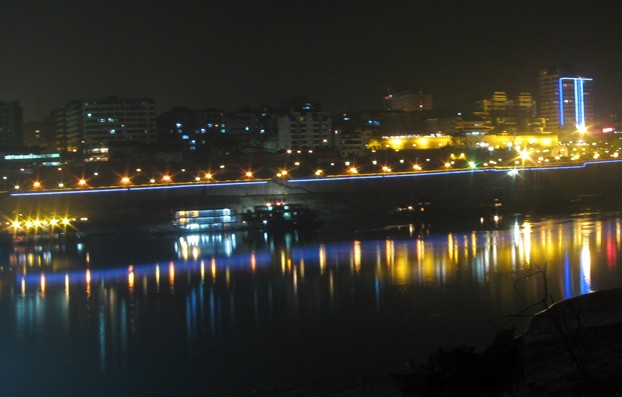 合江門是宜賓的一大型碼頭,可同重慶、樂山、云南等地,三江匯合,風(fēng)光獨(dú)特,對面是宜賓白塔。站在合江門處,左面緩緩流淌、水色如黛的江是岷江,右面翻花鼓浪、水色泛黃的江是金沙江。一看就知道,岷江嫻靜溫柔,如窈窕淑女;金沙江粗獷剛烈,像鐵血兒男。他們在合江門擁抱,合流成為舉世聞名的長江,卷起一江歡樂的浪花流向東方,最后注入東海。