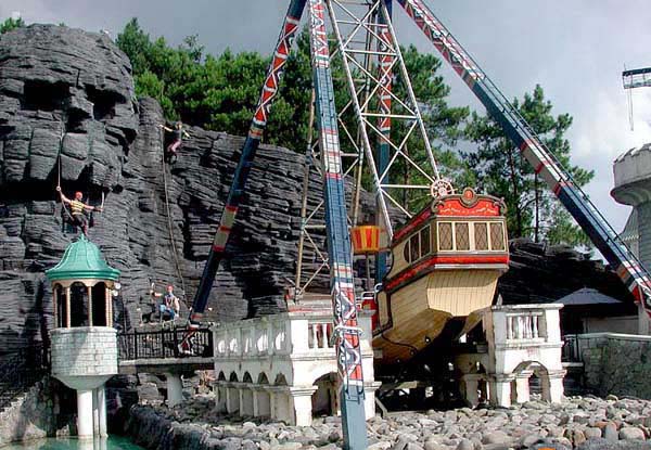 港口區(qū)以中世紀(jì)歐式景觀及建筑造型相結(jié)合為主,其項(xiàng)目有:海盜船、海盜游戲城、旋轉(zhuǎn)醉酒桶等。海盜船是您一定不可以錯(cuò)過的一次極度冒險(xiǎn)項(xiàng)目,最高擺弧140度,高達(dá)17米,你可充分體驗(yàn)海盜在狂風(fēng)暴雨的海上航行的驚險(xiǎn)感受,過后您一定會對此次歷險(xiǎn)回味無窮。園中還有如在港口用重炮轟船等特色娛樂設(shè)施,可讓您真正當(dāng)一回“地中海海盜”。另外該園區(qū)內(nèi)還設(shè)有歐式餐廳和歐式紀(jì)念品專賣店。