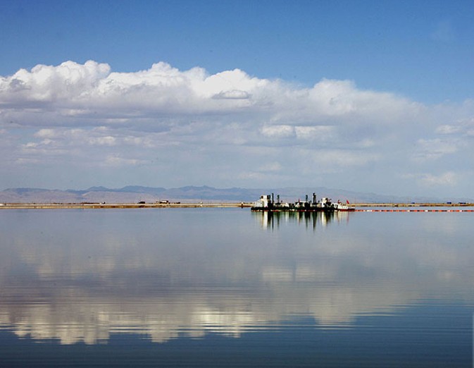 萬丈鹽橋道寬路長,風(fēng)光無限。人們乘車來到這里,只見筆直坦蕩的路橋,象一把利劍將浩瀚的鹽湖一劈兩半。鹽橋兩旁有鉀肥廠的廠房,宿舍,有溝壑一般的采礦點(diǎn),不遠(yuǎn)處還有舉世聞名的青藏鐵路,一列列長蛇似的火車,吞云吐霧,鳴鳴吼叫著從湖面上飛馳而過。