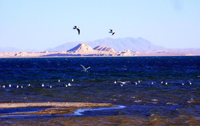 可魯克湖和托素湖雖然相距很近,而且有著相同的生態(tài)環(huán)境和變遷歷史,然而它們的姿態(tài)、風(fēng)貌和性格卻迥然不同。可魯克湖屬于微咸性淡水湖,湖床低洼不平。巴音河的水常年帶著大量的牛羊糞和其他有機(jī)物注入湖內(nèi),使湖底變得泥質(zhì)肥厚,雜草叢生,尤其是浮游生物極其豐富,而這些都是魚(yú)類天然的飼料。所以湖中土種湟魚(yú)和條鰍屬魚(yú)類很多??婶斂撕宄?,湖面平靜,景色綺麗旖旎。托素湖則是典型的內(nèi)陸咸水湖,水生動(dòng)植物和浮游動(dòng)植物很少,湖的周圍全是茫茫的戈壁灘。托素湖湖面遼闊,湖岸開(kāi)闊,無(wú)遮無(wú)攔,晴天時(shí),湖面煙波浩淼,水天一色,蔚為壯觀;大風(fēng)刮起,則浪濤洶涌,浪花飛濺,拍岸有聲,動(dòng)人心魄。