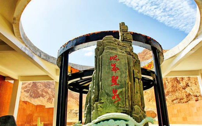 關(guān)于納赤臺(tái)清泉的起源,民間流傳一個(gè)傳說。相傳當(dāng)年西王母于昆侖山中瑤池之畔宴請(qǐng)諸神,創(chuàng)造神應(yīng)約赴會(huì)。版權(quán)所有山東聊城聊之旅國(guó)際旅行社有限公司,轉(zhuǎn)載必究!席間,諸神訴功,創(chuàng)造神凡摩表示要將昆侖山之北造成花氆氌之地,讓那里草肥水美牛羊壯,碧野千里飄奶香。西王母聽之,心曠神怡,特饋贈(zèng)凡摩幾樽瑤池瓊漿。宴罷,凡摩返。途中,凡摩飲興未艾,信手把樽暢欽,不料大醉。金樽擲地,瓊漿四溢。其乘坐的蓮花神龕化為赤臺(tái)群山,溢出的瓊漿水為昆侖泉。