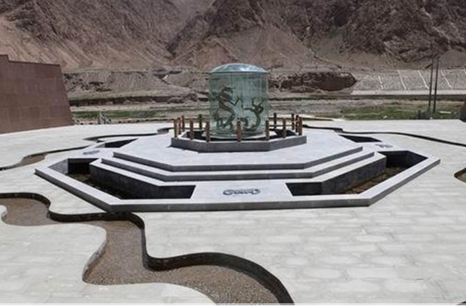 清泉從地層驀然噴涌而出,如傳說中的瑤池瓊漿般清澈透明,人們?cè)谌厮闹苡没◢弾r石板砌成一個(gè)多邊形圖案的池臺(tái),稱納赤臺(tái)清泉。此清泉雖處在海拔3540米高寒地區(qū),常年冰天雪地,水溫較低,但從不會(huì)封凍,是昆侖山中第一個(gè)四季不凍的冷泉。納赤臺(tái)泉水量大而穩(wěn)定,據(jù)檢測(cè)可達(dá)224.7升/秒,礦化度小于0.5克/升,并含有對(duì)人體有益的礦物質(zhì)和微量元素,經(jīng)投資開發(fā)生產(chǎn)成昆侖礦泉水,被人們謄為“冰山甘露”。