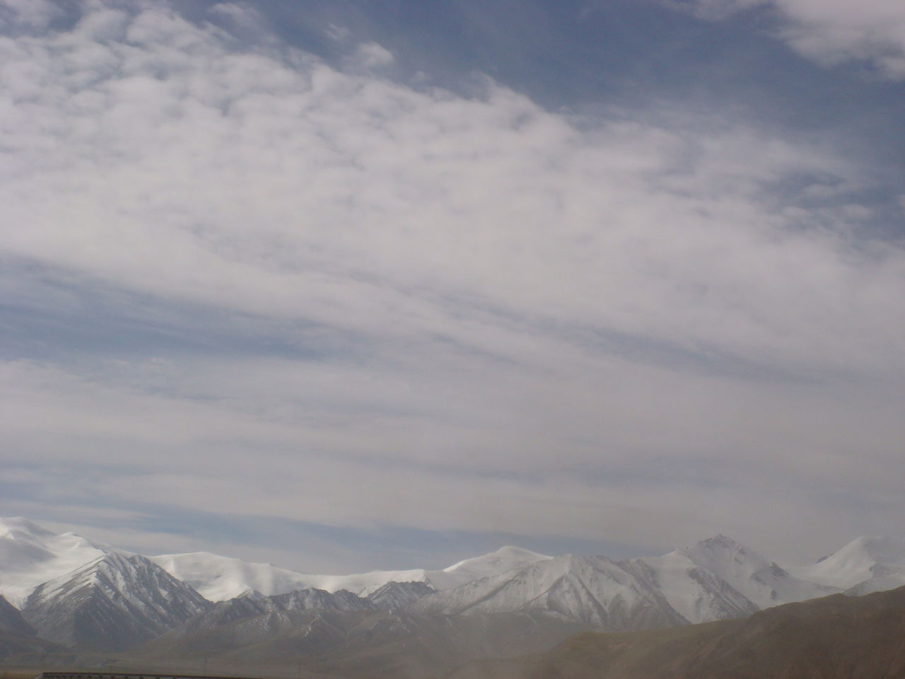 山峰頂部常年被冰雪所覆蓋,無(wú)巖石表露。冰雪坡較平緩。粒雪盆以下冰川,由于每年氣溫高,融化快,降水少,消融大于累積,屬消退型大陸冰川。冰川上雖有裂縫,但少有破碎冰崩地區(qū)。粒雪盆則平緩而寬闊,冰雪坡下未曾發(fā)現(xiàn)有崩塌而下的堆積物與痕跡。山口兩側(cè)的冰雪山峰較為集中,各峰頂均呈白色,有積雪,坡下與冰川上則呈灰褐色,均明顯呈現(xiàn)出條條裂縫。