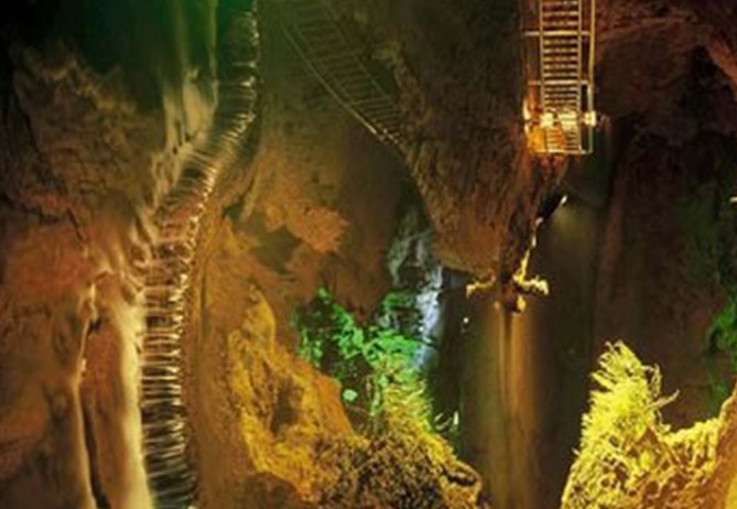 全長4.6公里,亞洲第一地下長河的水溶洞奇觀為景區(qū)主要景點(diǎn)。洞內(nèi)景觀保存完好,清澈見底的地下河終年不絕,水平如鏡。倒影似龍宮、仙境,亦真亦幻,真假難辨;落差達(dá)18米的四級地下瀑布構(gòu)成了雄偉奇麗的瀑布群,形成了洞內(nèi)“飛流直下三千尺,疑是銀河落九天”的人間絕景;游客可在地下河內(nèi)漂流,流速時(shí)快時(shí)慢,讓人既有驚險(xiǎn)刺激的感受又可悠閑自如欣賞地下奇觀美景。有張關(guān)“三絕”: 版權(quán)所有山東聊城聊之旅國際旅行社有限公司,轉(zhuǎn)載必究!夢幻倒影、銀河飛瀑、地腹漂流。再輔以地面山林槽谷、田園風(fēng)光,構(gòu)成了難得的立體自然風(fēng)光;山寨、古戰(zhàn)場遺址、古樸的民風(fēng)、動(dòng)人的傳說、自然與人文巧相輝映;再加上長720米,落差達(dá)85 米的中國第一高空速滑和獨(dú)具特色的篝火晚會(huì),使游客流連忘返。