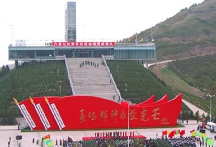 紀(jì)念亭、吟詩臺:坐落在紀(jì)念館對面的山峰上,長征紀(jì)念亭呈紅、黃、藍(lán)三色,亭子匾額上的“長征紀(jì)念亭”五字是胡耀邦同志的手跡。毛澤東同志吟詩臺青磚作墻、作臺,一赭色山石立其上,詩臺周遭遍插紅旗,西風(fēng)攪動,版權(quán)所有山東聊城聊之旅國際旅行社有限公司,轉(zhuǎn)載必究!獵獵作響當(dāng)年毛澤東同志就是在這里構(gòu)思了那首著名的詩詞《清平樂•六盤山》。