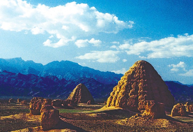 西夏王陵就是西夏王朝歷代皇帝的寢陵,雖然已遭到了毀滅性的破壞,然而,外形雖毀,但骨架尚存,宏偉的規(guī)模,嚴(yán)謹(jǐn)?shù)牟季?,殘留的陵丘,仍可顯示出西夏王朝特有的時代氣息和風(fēng)貌。