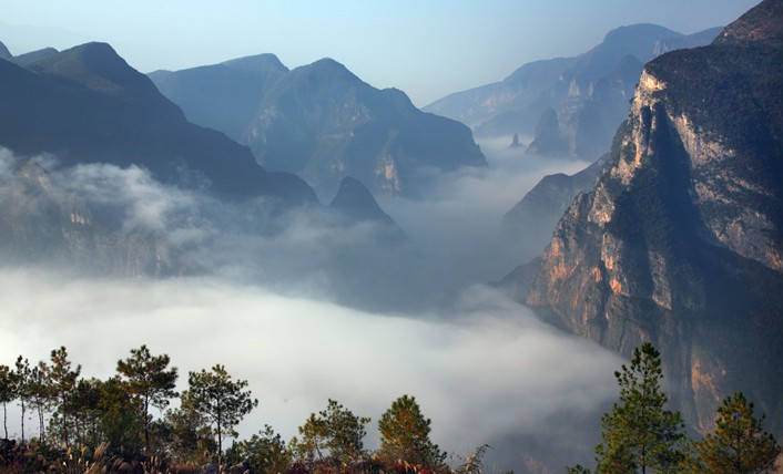 巫峽山脈位于重慶與湖北交界區(qū),自巫山縣城東大寧河起,至巴東縣官渡口止,綿延40余千米,北與大巴山相連,主峰烏云頂海拔2400米。巫峽山脈是中國地勢(shì)二、三級(jí)階梯的界線,西起四川盆地,東至長江中下游平原。