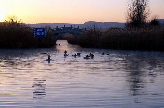 洽川景區(qū)的核心景點“處女泉”景區(qū)包括處女泉、夏陽瀵兩個景點,通稱處女泉景區(qū)。處女泉是蘆葦蕩內地下噴泉天然形成的溫泉。泉水恒溫,四季保持30℃左右,浮力極大,人入水不沉。水底泉眼無數(shù),細沙漫漫,游泳洗浴,泉涌沙旋,似綢紗拂體,如少女輕按,癢酥舒暢,如醉如仙。水中含鍶、銅、硒等微量元素,可祛病健身、益壽延年。