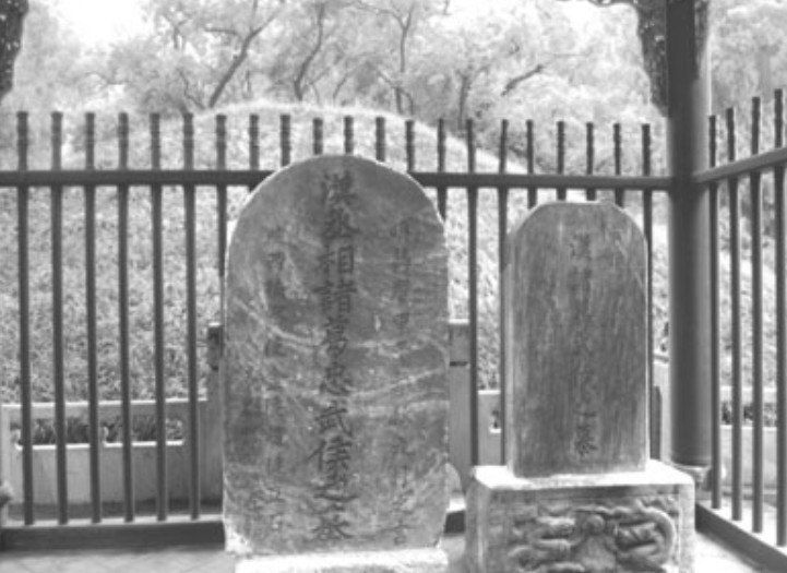 諸葛亮的墳前有兩塊石碑屹立,稍大的一塊由當(dāng)時陜西的巡撫所立,稍小的一塊是雍正年間,雍正的十九弟果親王所立,碑身有龍紋輝映。