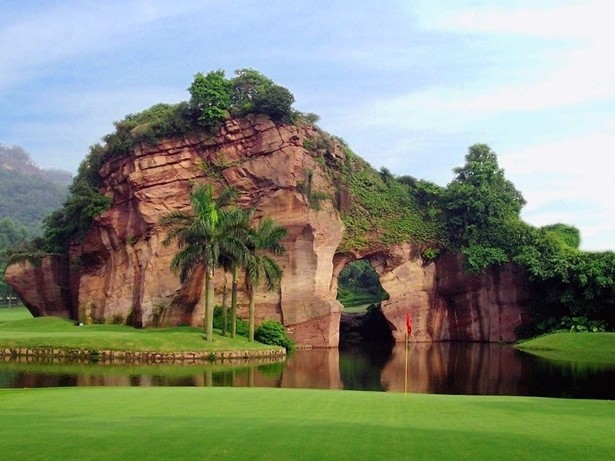 番禺蓮花山是廣東省重點(diǎn)風(fēng)景名勝區(qū),位于番禺市東部珠江口獅子河畔。蓮花山由48座紅色砂巖低山組成,海拔最高為108米,占地2.54平方公里。其中有座麒麟峰,因峰頂上有一塊酷似蓮花的巖石,所以后人把這座山稱為蓮花山。蓮花山在古時候是一個石礦場,經(jīng)幾百年的采礦,蓮花山上或懸崖峭壁,或奇巖異洞,或嵯峨幽邃,或雄偉挺拔,形成了天然與人工相結(jié)合的獨(dú)特景觀,堪稱嶺南一秀。
