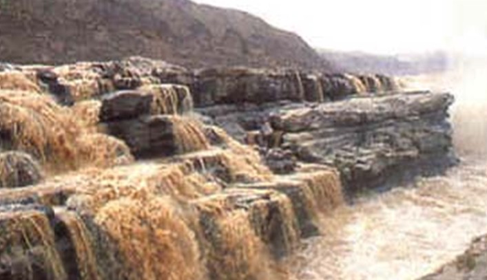 壺口瀑布形成的最主要是由于印支運(yùn)動(dòng)(始于距今約2億3千萬年)作用結(jié)果形成的兩組節(jié)理,一組為基本順河水流向發(fā)育(北北東,走向?yàn)?5o);另一組為跨河發(fā)育的(北東東,70-80o走向)。此外,沿這兩組節(jié)理在瀑布的孕育段、形成段及消亡段也出現(xiàn)過一些斷層。由于在壺口及其孟門山以南地層傾角很小,節(jié)理發(fā)育,斷層偶見,地層又相當(dāng)水平,所以,易于被構(gòu)造作用切割的支離破碎。所以說,壺口瀑布的形成是節(jié)理斷層發(fā)育和河水的強(qiáng)烈切割下蝕兩大因素所致。