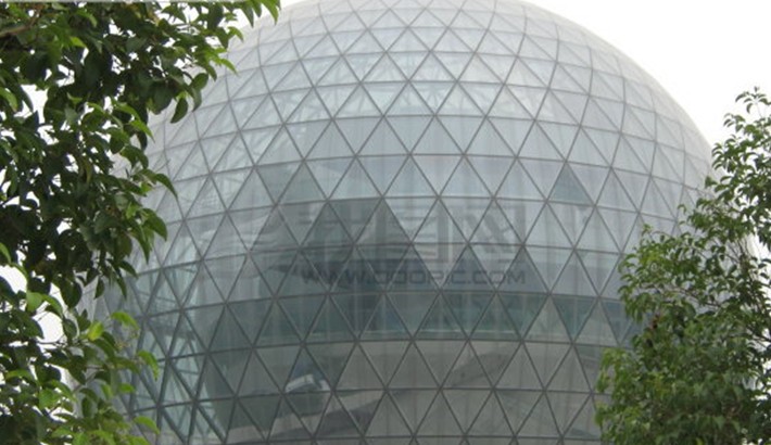 緊接著,步入電視塔北側(cè)的科技展館———引人注目的玻璃體球形建筑。