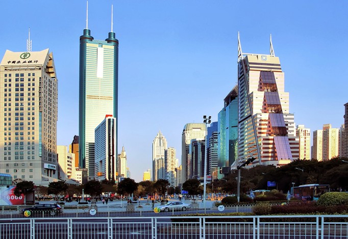 深圳地王大廈高69層,總高度383.95米,實高324.8米,建成時是亞洲第一高樓,現(xiàn)在是深圳第二高樓,也是全國第一個鋼結(jié)構(gòu)高層建筑,位居目前世界十大建筑之列。大樓于1996年完工。 主題性觀光項目"深港之窗",就坐落在巍峨挺拔的地王大廈頂層,是亞洲第一個高層主題性觀光游覽項目。在此可以俯覽深圳市容,遠眺香港市容。