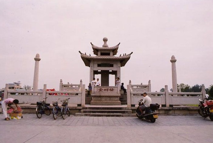 1987年,在原址修建鱷渡秋風(fēng)亭和祭鱷臺(tái)。鱷渡秋風(fēng)亭為金石結(jié)構(gòu),四柱四角雙重檐,分兩級(jí)層臺(tái),上亭下臺(tái),四周有石欄環(huán)護(hù)回廊欄桿,端莊且典雅。亭內(nèi)設(shè)祭鱷臺(tái),題書“鱷渡秋風(fēng)”、“祭鱷臺(tái)”匾額。其中一聯(lián)日:“佛骨滴來嶺?;囟鲋?;鱷魚徙去江河自此澄清”。另一柱聯(lián)為:“溪石何嘗惡;江山喜姓韓”。亭中有一條栩栩如生的石鱷魚,脊背上堅(jiān)載大石碑,正面刻韓愈《祭鱷魚文》全文,背面刻(鱷渡亭碑記》。每年秋天,這里的景色最為迷人。