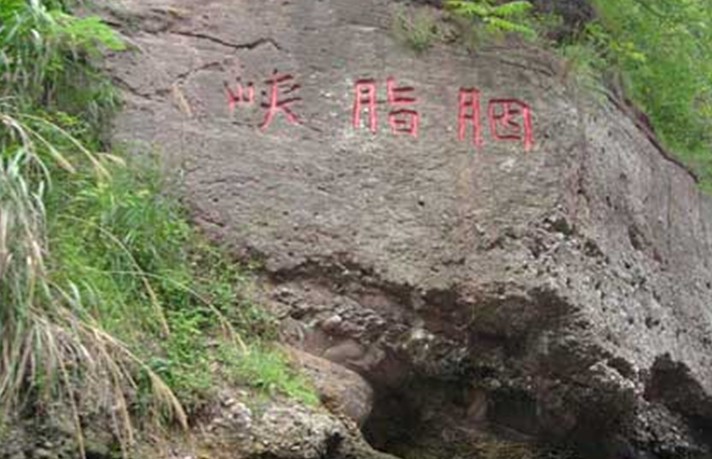 進(jìn)入胭脂峽口,漸往里走,樹(shù)木繁密、植物各異,景色也更加迷人。只因很少有人往來(lái),所以道路狹窄難走。開(kāi)始,還能找到一些崎嶇不平的羊腸小道,游人還能環(huán)顧山巒,目躍群峰。到后來(lái),就只能穿梭于叢林之中,攀爬于陡坡之上,腳下是青苔綠階,頭頂是彎藤嫩枝,行路之艱難可想而知。