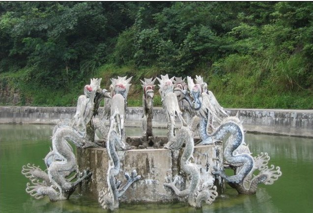 寺廟建筑是九龍山美景的重要組成部分。凡名山勝跡,都伴以殿宇亭榭古樸建筑作景。九龍山很早就有廟宇建在龍鼻山頭上,為鄉(xiāng)民信士進(jìn)行祭祀游覽的活動場所。九龍山古有“九仙廟山”之稱。所謂九仙者,意為多種神仙。我國道家立上仙、高仙、大仙、玄仙、天仙、真仙、神仙、靈仙、至仙為九仙,據(jù)創(chuàng)修九龍山子孫堂碑記載,舊有佛殿、真武殿、關(guān)帝殿、靈宮殿,日久毀壞。