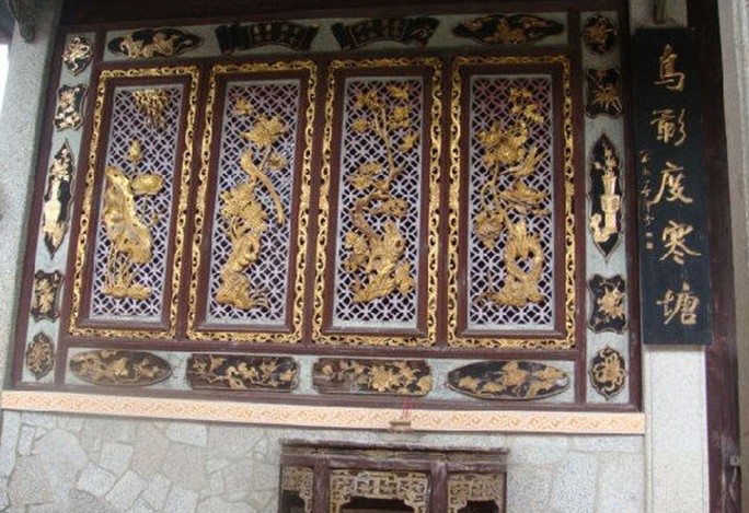 后廳。也就是大雄寶殿,系宮殿式建筑,精工雕飾,翹角飛檐,氣勢(shì)壯觀。脊頂嵌瓷“雙龍朝火寶”,是饒平縣老工藝師蔡佳余妙作。殿前走廊,置一長(zhǎng)方形香案。正殿與走廊間,有彩色雕欄,校址 有精美的窗扇。