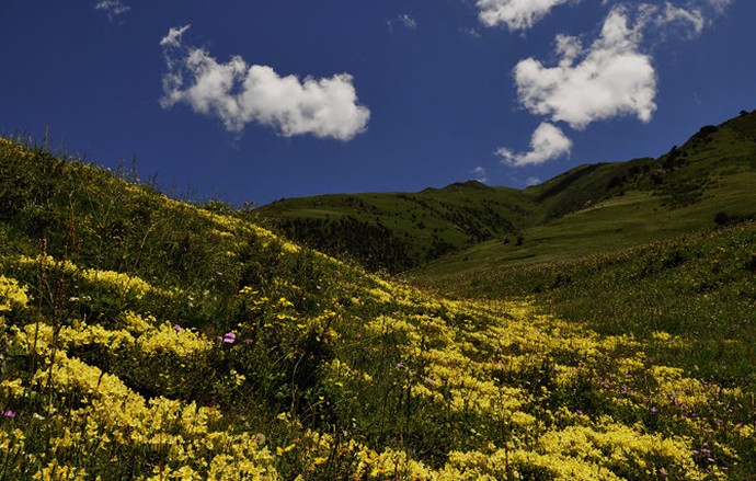 巴塘熱水溝谷內(nèi)曲徑通幽,植物茂盛,野生動物眾多,風(fēng)景宜人。谷中多溫泉,富含多種微量元素。溝的兩旁高山起伏,生長著茂密的柏樹、毛拔柳、百里得杜鵑等高原樹種。春夏之際,山花爭艷、百鳥歡唱、蒼翠幽靜、風(fēng)光宜人。這里還棲息著馬鹿、巖羊、藏羚羊、雪雞和麝等珍禽異獸。清澈的藏曲河帶著溫泉的氣霧沿溝蜿蜒奔流。可沐浴療病的溫泉水清澈透明,幾十個泉眼若沸若蒸,霧氣騰騰,十分壯觀。