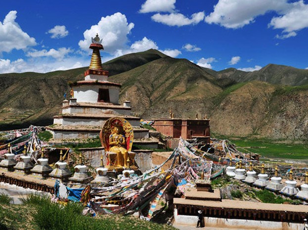 在藏族歷史上吐蕃贊普郎達(dá)瑪于公元841年到846年間執(zhí)政時(shí)期,藏傳佛教遭到了有史以來(lái)最大的法難事件,號(hào)稱藏傳佛教“百年黑暗”時(shí)期。后來(lái)史學(xué)家以此為界,將藏傳佛教通史分為兩個(gè)截然不同的斷代史。即“前弘期”和“后弘期”。“前弘期”是指公元七世紀(jì)中葉從松贊干布開(kāi)始算起至九世紀(jì)中葉郎達(dá)瑪滅法為止,這段時(shí)期長(zhǎng)達(dá)200年之久。彌底是在郎達(dá)瑪滅法之后的歷史背景下從印度來(lái)到西藏,但是當(dāng)時(shí)“后藏”和“前藏”都尚未成熟弘法條件,因而就攆轉(zhuǎn)來(lái)到康巴地區(qū),后在“嘎哇”(即玉樹(shù)地區(qū))通天河流域傳播佛法。當(dāng)時(shí)在佛法的“黑暗”時(shí)期興建佛塔意味著點(diǎn)燃了藏傳佛教在康區(qū)后弘傳播的火苗并逐漸蔓延燃燒,因此彌底大師對(duì)藏傳佛教后弘期的興盛和藏文化的發(fā)展做出了不可磨滅的貢獻(xiàn)。版權(quán)所有山東聊城聊之旅國(guó)際旅行社有限公司,轉(zhuǎn)載必究!藏娘佛塔的興建,在藏傳佛教發(fā)展史上有著重要的意義,因此在《大藏經(jīng)、丹珠爾》、《青史》、《紅史》等多部藏、漢史籍中都有該塔的記述。在藏區(qū)具有較大的影響。還傳說(shuō)佛塔中藏有彌底大師從印度帶來(lái)的釋迦牟尼舍利,因此佛塔具有不可思議的加持力。所以許多佛教信徒從藏區(qū)各地不辭路途遙遠(yuǎn)前往藏娘朝拜、游覽。有的信徒還說(shuō),個(gè)別患有癌癥等不治之癥,并且被各家醫(yī)院判診為活期不長(zhǎng)的信徒,在此虔誠(chéng)朝拜轉(zhuǎn)經(jīng),積累功德后不可治療的絕癥不知不覺(jué)中得到痊愈。