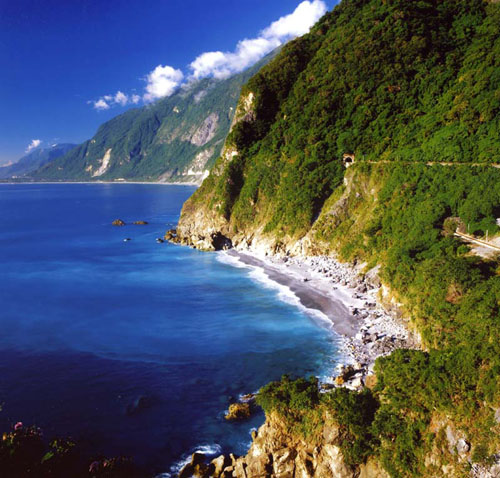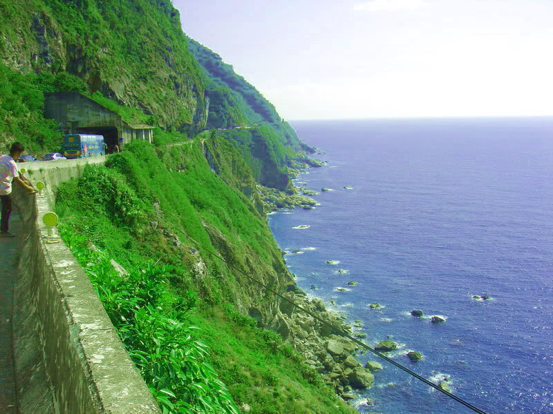 車過崇德大隧道,可見蘇花公路鑿壁而筑。一道凹槽仿佛鑲刻在高距海面數(shù)百米的崖腰上,隨突向海面的參差巖壁而曲折回轉(zhuǎn),盤旋若龍。遠看公路,好像纏繞在危崖腰部的腰帶,又似摩天大廈高層的一道沒有欄桿的懸空陽臺走廊,汽車在上面飛馳,稍有不慎,便要滾入幾百米下的太平洋中。坐車的人掠崖凌空,臨海觀潮,大有驚心動魄之感。車過清水崖,穿過若干隧道,便到和平站,再向版權(quán)所有聊城聊之旅旅行社有限公司,轉(zhuǎn)載必究!北,便是蘇花公路北段,直抵蘇澳漁港。