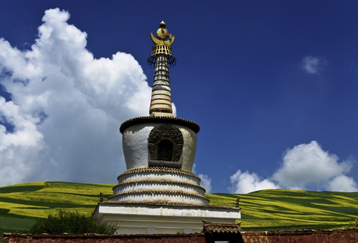 佑寧寺的建筑風(fēng)格融合了土族、藏族、蒙古族和漢族的藝術(shù),寺中的雕塑與繪畫藝術(shù)的價(jià)值很高。再加上學(xué)風(fēng)濃厚,三世章嘉•若貝多杰活佛,三世土觀•羅桑吉尼瑪活佛,三世松巴•益希班覺活佛都是著名的學(xué)者,可謂名僧輩出。了解了佑寧寺的滄桑歷史之后,就讓筆者帶座深山古寺去一探究竟吧。經(jīng)過數(shù)十公里崎嶇山路的顛跛,想必性急的您—定已經(jīng)有種急于朝拜圣地的沖動(dòng)了吧。依山傍水的佑寧寺雖然經(jīng)歷了戰(zhàn)火的無情摧殘,但數(shù)百年的歲月已經(jīng)把當(dāng)年的硝煙沖刷得一干二凈,寺院與山體層疊交錯(cuò),渾然一體。寺前的白塔在山間嫩黃的油菜花的襯托下顯得無比雄武,古樹、佛殿交相呼應(yīng),更顯寺院的威武莊嚴(yán)。這里最佳的旅游季下是每年的農(nóng)歷正月、四月、六月及臘月。版權(quán)所有山東聊城聊之旅國際旅行社有限公司,轉(zhuǎn)載必究!因?yàn)閷脮r(shí)寺院將舉行較大規(guī)模的法會(huì),熱鬧非凡。由于身處土族聚居的互助縣,這里的僧侶幾乎全部是土族,對(duì)于篤信喇嘛教的土族來說,到寺院”經(jīng)聽法是新年里一等一的大事。每年的正月初二,寺山將舉行為期十五天的祈愿法會(huì)。