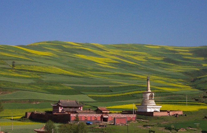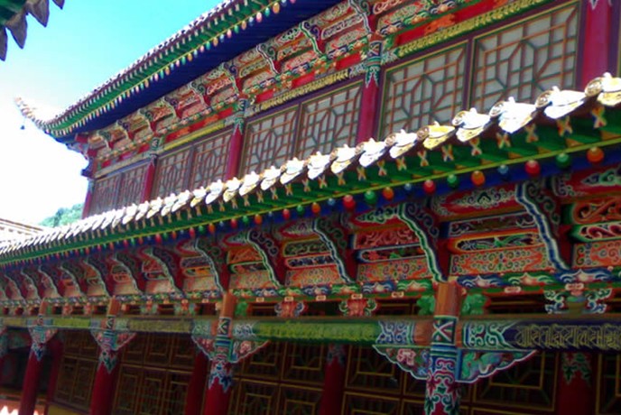 可是到了雍正二年,因?yàn)閰⑴c了羅卜藏丹津反清叛亂,宏偉的寺院竟然被官軍付之一炬,寺內(nèi)僧人死走逃亡。盡管在雍正十年,皇帝為了重當(dāng)?shù)乩?dāng)?shù)乩锝潭囊庠?,版?quán)所有山東聊城聊之旅國際旅行社有限公司,轉(zhuǎn)載必究!欽命宣修寺院,并賜額“佑寧寺”。但這座可與任何恢宏寺院比肩的佛教圣寺再也沒有恢復(fù)年的規(guī)模。在空前絕后的“文革”中,這座古寺再次被焚毀,這一次比雍正年間那次兵火更加徹底,寺內(nèi)文物幾乎蕩然無存?,F(xiàn)在,經(jīng)過小規(guī)模修復(fù)的寺院只剩下稀稀落落的數(shù)十間院落和并不能稱為宏偉的幾座經(jīng)堂散處于山谷間,在北山林場(chǎng)的映襯下自在場(chǎng)然,似乎依然在回味著數(shù)百年來的那兩場(chǎng)令人心酸的大火所帶來的凄涼悲慘。