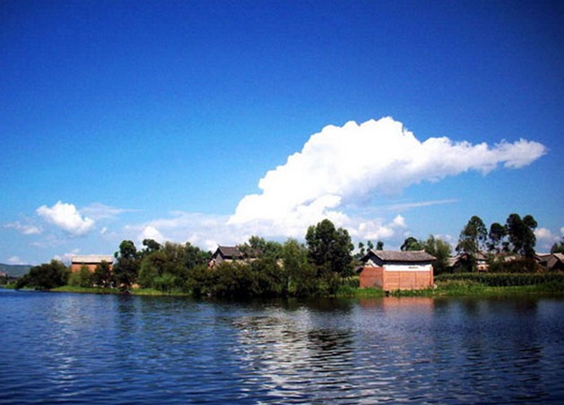 西湖在云南高原濕地中景觀獨特,白族風俗濃郁,歷史文化[2]積淀深厚,是展示濕地保護成效和濕地生態(tài)環(huán)境教育的理想基地。水域面積約4.3平方公里,平均水深1.8米、最深處近10米。湖水四季清澄如鏡,湖中菱荷青青,蘆葦搖曳;六個村莊、七個島嶼散落水中,構成村中有湖、湖中有村的田園風景。蕩舟湖上,四周的田園屋舍,湖中的魚池菜畦,倒映湖中,嬉蕩之間,伴著清風送來的白家漁歌,游客自會陶醉在“一片瓊瑤水,千重翡翠山”的畫境之中。