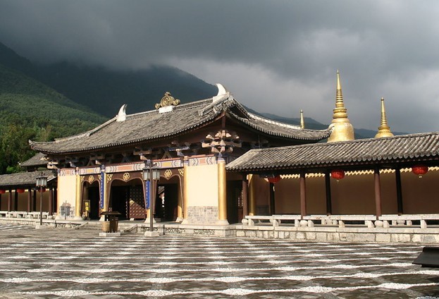 穿過塔樓,正對面就是皇宮大門,大理國的經(jīng)濟文化發(fā)達,大理皇宮的建筑也仿大宋皇宮風格,建造得金碧輝煌,當年段譽的大伯保定帝段正明就是在這里會見朝臣、處理國事。走進后院,即是皇宮御書房、寢宮等建筑,都有著濃郁的大理地方民族風格和佛國特色。