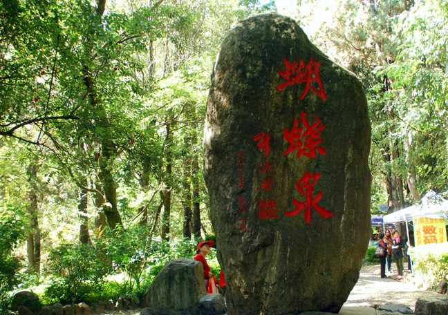 公園以“蝴蝶泉”而聞名。蝴蝶泉是一個(gè)方形潭,占地約50平方米左右,池中泉水清澈,泉底鋪著鵝卵石,水從白沙中涌出,還不時(shí)冒著氣泡,四周砌有大理石欄桿。“蝴蝶泉”三字為郭沫若所題。版權(quán)所有山東聊城聊之旅國(guó)際旅行社有限公司,轉(zhuǎn)載必究!泉被兩棵粗壯彎曲的百年合歡樹濃陰覆蓋。蝴蝶泉公園內(nèi)種有鳳尾竹、圣誕樹等林木,泉后的松林、柏林、棕櫚林、茶林、杜鵑林、毛竹林,蝴蝶泉邊合歡樹、酸香樹、黃連木等本地特有的芳香樹種。據(jù)說以前每年農(nóng)歷三四月,云弄峰上的百花齊放,泉邊的大合歡樹散發(fā)出一種清香,這種清香吸引著成千上萬(wàn)只蝴蝶從四面八方飛來(lái),在蝴蝶泉四周飛舞。蝶大如巴掌,小如銅錢,呈黃、紅、白等七彩,品種多達(dá)上百種。無(wú)數(shù)蝴蝶還勾足連須,首尾相銜,一串一串的從大合歡樹上垂掛至水面,五彩繽紛,甚為奇觀。