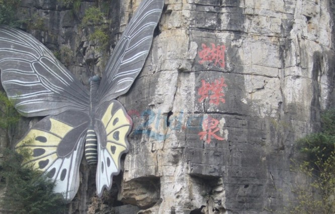 首先是“泉”。蝴蝶泉的水是從巖縫沙層中浸透出來(lái)的,水質(zhì)特別清冽,一 出地表便匯聚成潭,沒有任何污染。蝴蝶泉奔瀉而出的泉水,近年來(lái)又被公園管理者十分珍惜地蓄積于三個(gè)一潭比一潭大的水潭之中,供人觀賞,最大的一潭約10畝。蝴蝶泉由過去的一潭,變?yōu)楝F(xiàn)在的四潭,這是蝴蝶泉公園內(nèi)最顯眼的景觀。