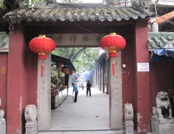 順治初,臨濟(jì)宗32世宗師古鏡宗符,從福建漳州游方到廣州,參謁西來庵時(shí),為庵主大慈素端(1602-1664)極力挽留,要他擔(dān)負(fù)起重光祖庭的重任,加上當(dāng)?shù)孛亢兰澇炭蓜t、王念初、梁佩蘭、陳恭尹諸公呈詞懇請,乃應(yīng)允主持重建工作,發(fā)動(dòng)海內(nèi)外信眾踴躍捐資,把古庵改建成一座禪宗大寺院;據(jù)元覺撰《華林禪寺開山碑記》,當(dāng)年,宗符禪師“爰拓基址,定方隅,引河流為功德水,植材木為祗樹園,首建大雄寶殿,次及樓閣堂廡寮室庖逼,無不圓成。”