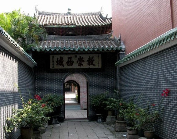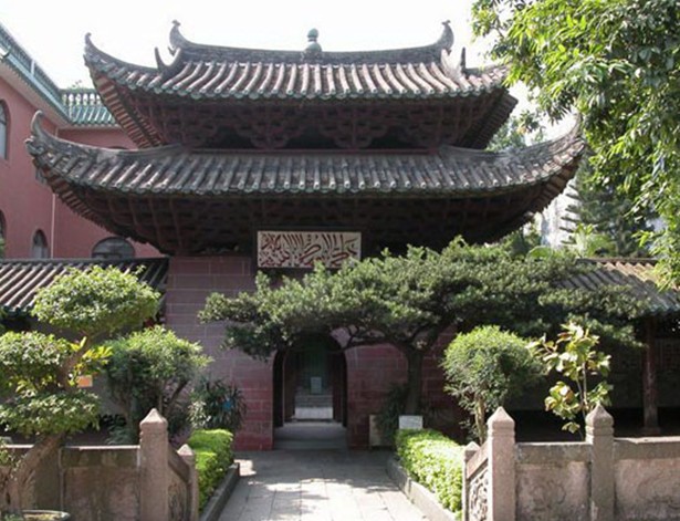 懷圣寺又名獅子寺,俗稱光塔寺,是中國四大古代清真寺之一,也是我國現(xiàn)存最古老的清真寺建筑。位于越秀區(qū)光塔路56號,被列為廣東省省級重點文物保護單位。唐、來以來,廣州為我國海外貿(mào)易的主要港口,那時廣州的阿拉伯富商最多,他們在當(dāng)?shù)卣闹С窒?,修建了一座?guī)德宏大的清真寺,即今日的懷圣寺,寺的命名表達(dá)了中外教民對圣人穆罕默德的尊從和懷念。該寺禮拜大殿置于院庭的正面,它是3間帶周圍廊、歇山重檐綠琉璃,帶斗拱的古典式建筑,巍然聳立在帶雕石欄桿的大平臺上,充分顯示了大殿的高貴威嚴(yán)、石欄桿板上的雕刻各異,有葫蘆、扇子、傘蓋、花卉、獅子、游魚等物,極為活潑生動。大殿內(nèi)部潔白明亮,用木地板及三面拉門,殿內(nèi)裝飾雖少,但很整潔大方。