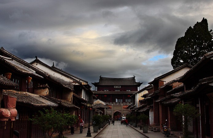 元代的時候,由大理段氏總管開始建筑土城,到明朝才正式建城,至今整座縣城依然較為完整的保持了600多年前建城時候的棋盤格局,是中國保存最完好的明清古建筑群之一。巍山古城內(nèi)街道以拱城樓為中心,呈標(biāo)準(zhǔn)的井字結(jié)構(gòu)建設(shè),共有25條街道,18條巷,全長14公里,城內(nèi)房屋基本保持了中式結(jié)構(gòu),南、北主軸線兩側(cè)的房屋則完整的保存了明、清時代的建筑式樣和風(fēng)格,房子朝向為南偏西15度左右,屬結(jié)合當(dāng)?shù)氐淖罴巡晒夥绞?,以彌補(bǔ)“四合五天井”光線不好的一面。
