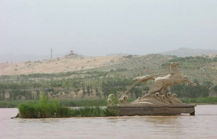 有一天,火盆似的驕陽烤得大地發(fā)燙,小石匠為選渠口已經(jīng)走了3天3夜,他實(shí)在累極了,便一頭扎在河灘上睡著了。熟睡中,他夢(mèng)見一位美麗的仙女從沙坡頭大槐樹下的黃河浪濤里走了出來,挽著高高的發(fā)髻,身著錦衣,騎著一匹高頭白馬來到他的面前,說:“年輕人啊,你為了造福人們,勇于犧牲自己,令人可敬,請(qǐng)跟我來吧。”說罷,揚(yáng)鞭策馬,拖著長(zhǎng)長(zhǎng)的一條錦帶,順著黃河北岸飛奔而過,頓時(shí),錦帶拖過的地方留下一道長(zhǎng)長(zhǎng)的白印。