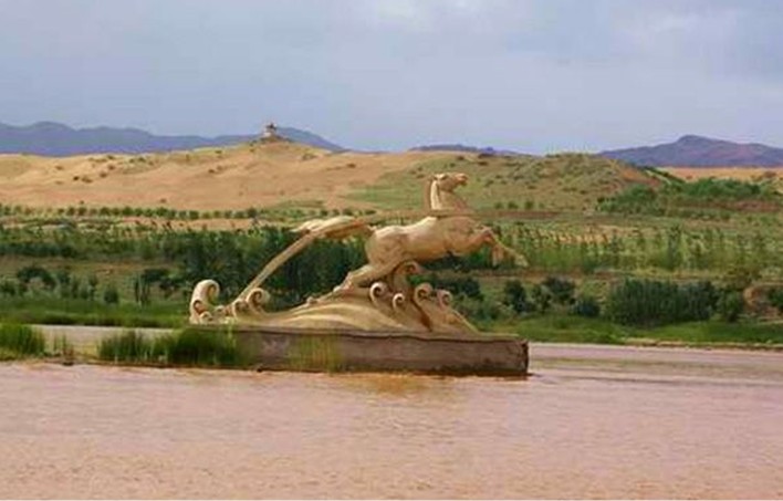 中衛(wèi)市城區(qū)有一條最古老的引水渠叫“美利渠”,它的引水原理是在河心筑堤引水,因此被稱為寧夏的“都江堰”。河水撞擊在10里引水長(zhǎng)堤上,但見浪花飛濺,恰似白云翻飛,遠(yuǎn)遠(yuǎn)望去,宛如一匹白馬拖著長(zhǎng)長(zhǎng)的韁繩馳騁在黃河之中,這便是中衛(wèi)古八景之一的“白馬拉韁”。