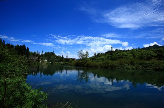 清音平湖位于清音閣旁邊,面積30萬平方米,系綠色生態(tài)湖,水質(zhì)純凈,清澈見底。四周青嶂翠巒環(huán)抱,古木參天,湖如碧玉嵌入其中,深深淺淺,點(diǎn)點(diǎn)滴滴,不知是樹映綠了湖,還是湖染綠了樹。置身于其間,只聽綠樹濃蔭處,蟬鳴聲聲,山風(fēng)陣陣,絲絲水氣洗盡凡塵,好一派山水之情,逍遙之樂。這里夏清秋涼、景美色秀,為度假避署的勝地;即使在冬季和春寒料峭的初春,這里沒有冷風(fēng)寒流相逼,仍然溫適如畫,翠色生煙。
