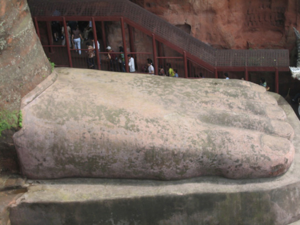 凌云山各峰上的寺宇,現(xiàn)在還保存的有棲巒峰的凌云寺和靈寶峰的靈寶塔。凌云寺規(guī)模頗大,大佛就鑿于離寺不遠的崖上。從這里可以沿一條鑿于懸崖邊上的陡直小路,下到大佛的腳邊,在此憑欄看佛,可以仔細觀賞大佛頭部各個部位的細微之處。因為大佛鑿于凌云寺前,所以大佛也就稱為凌云大佛。而凌云寺也因有了這尊大佛,而被人們稱為大佛寺。凌云山有了大佛,山更出名,大佛在凌云山上,山更增色。