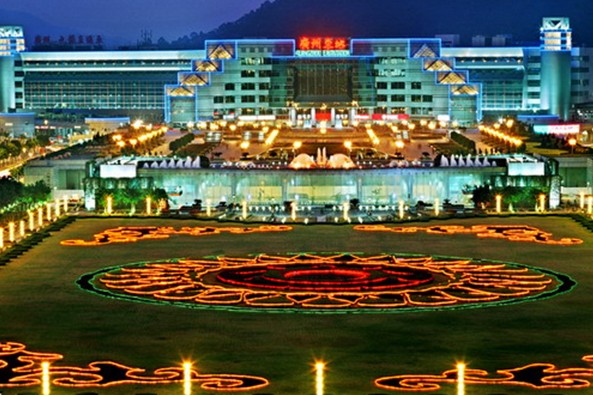 天河東站綠化廣場位于廣州市新城市軸線上,占地面積4.7萬平方米,于1998年9月中旬動工,1999年7月1日正式完成并交付使用。廣場中央綠地2.6萬平方米,鋪種馬尼拉草18315平方米,其中有6000平方米種植標志性的紋樣,分圍種植1300平方米的福建茶綠籬。